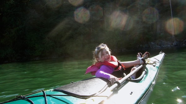 She paddled for a bit, then just enjoyed the ride across the bay. We were finally in the shadows of the campsite. “It’s your job to choose which site we should take. Since there’s nobody here you have a lot to pick from!,” I exclaimed. She was happy to have that news.